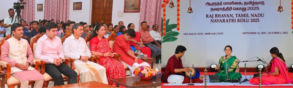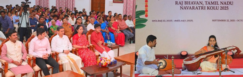 Hon’ble Governor and Tmt.Laxmi Ravi, First Lady of Tamil Nadu, performed Navaratri Puja and witnessed the Bhajan performance of the Mayilai Raghumayi Raman Challengers Music Band- 01.10.2025