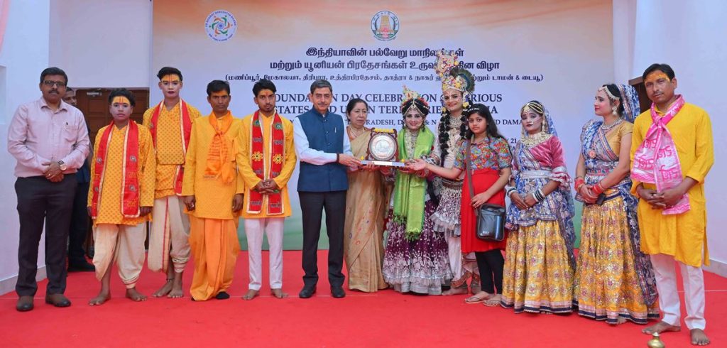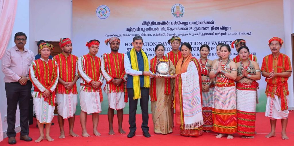 Thiru. R.N. Ravi, Hon'ble Governor of Tamil Nadu, felicitated the cultural artists who performed spectacular Mayur Holi Dance (Uttar Pradesh), Group Song Performance (Manipur), Wangala Dance (Meghalaya), Mamita Dance (Tripura) on the occasion of the Foundation Day Celebrations of various States and Union Territories of India (Manipur, Meghalaya, Tripura, Uttar Pradesh, Dadra & Nagar Haveli and Daman & Diu) held at Lok Bhavan, Chennai - 21.01.2026.