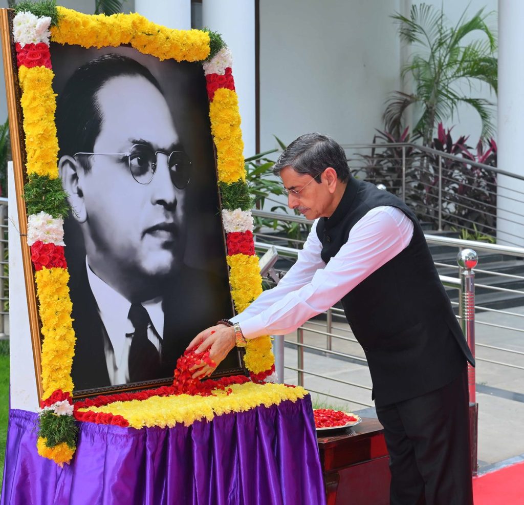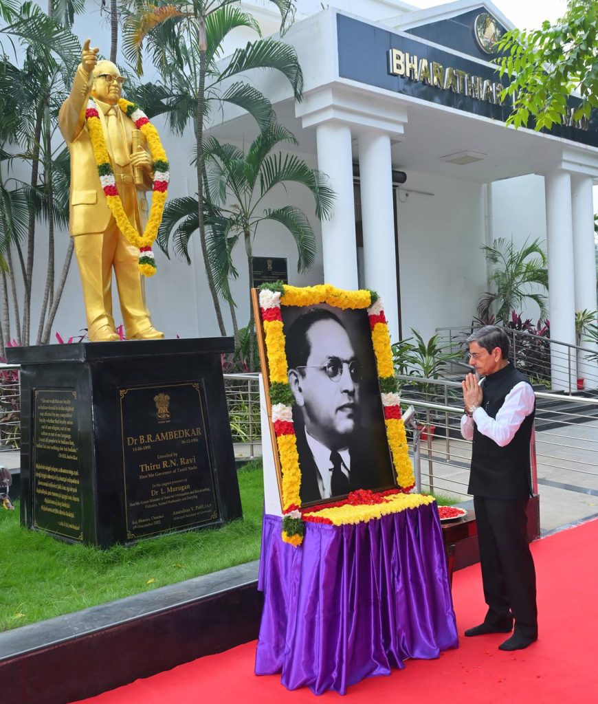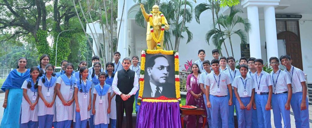 Thiru.R.N.Ravi, Hon’ble Governor, along with students of TI School paid floral triubutes to Dr. B.R. Ambedkar on the occassion of his 70th Mahaparinirvan Diwas (Memorial Day) – 06.12.2025