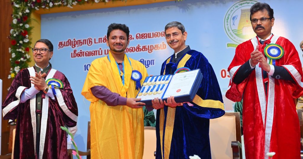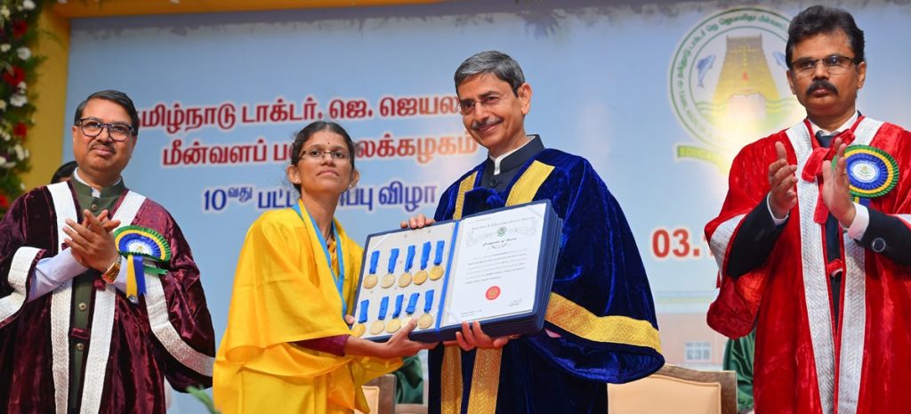 Thiru. R.N.Ravi, Hon’ble Governor of Tamil Nadu and Chancellor, Tamil Nadu Dr. J.Jayalalithaa Fisheries University presented the medals and degrees to 496 students at 10th Convocation – 03.11.2025