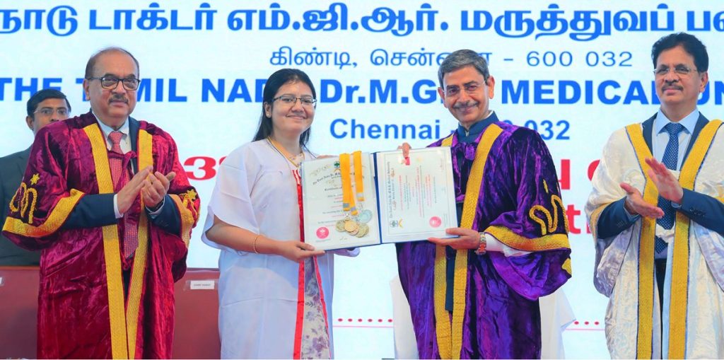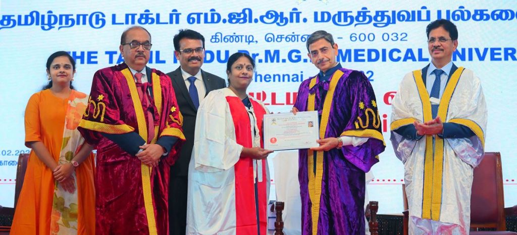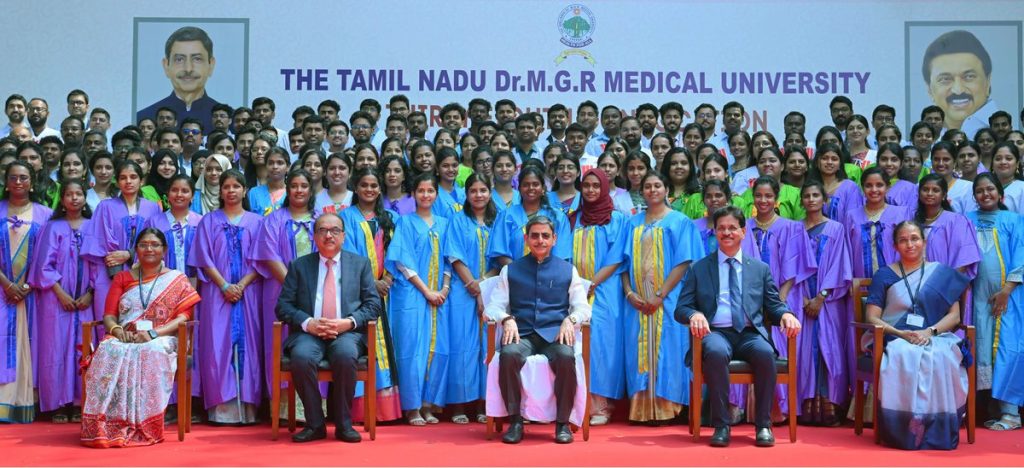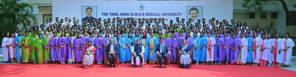 Thiru. R.N.Ravi, Hon’ble Governor of Tamil Nadu and Chancellor, The Tamil Nadu Dr. M.G.R. Medical University presented the medals and degrees to 50,159 students at 38th Convocation of the The Tamil Nadu Dr. M.G.R. Medical University at Silver Jubilee Auditorium, The Tamil Nadu Dr. M.G.R. Medical University, Chennai on 27.02.2026. Prof. Dr. R.K. Dhiman, Director, Sanjay Gandhi Postgraduate Institute of Medical Sciences, Lucknow participated as chief guest and delivered the convocation address. Prof. Dr. K. Narayanasamy, Vice-Chancellor, The Tamil Nadu Dr. M.G.R. Medical University and other dignitaries were present.