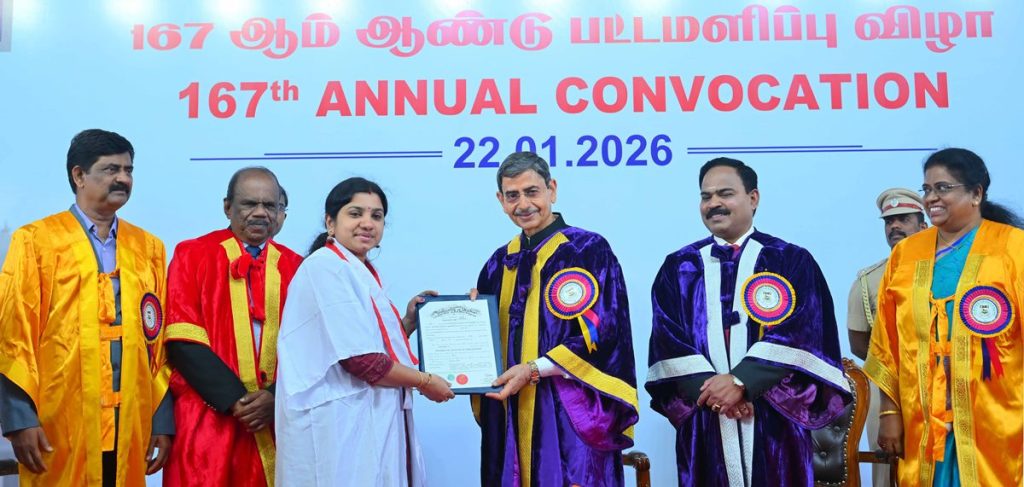 Thiru. R.N.Ravi, Hon’ble Governor of Tamil Nadu and Chancellor, University of Madras presented the medals and degrees to 1,93,676 students at 167th Convocation of the University of Madras at Senate House, University of Madras, Chennai - 22.01.2026. Padma Bhushan Dr. A.Sivathanu Pillai, Distinguished Scientist, Indian Space Research Organisation, Former CEO & MD, Brahmos participated as chief guest and delivered the convocation address. Dr. P.Sankar, I.A.S., Secretary to Government, Higher Education Department, Government of Tamil Nadu and other dignitaries were present.