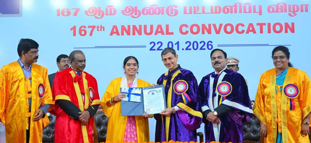 Thiru.R.N.Ravi, Hon’ble Governor of Tamil Nadu and Chancellor, University of Madras presented the medals and degrees to 1,93,676 students at 167th Convocation of the University of Madras- 22.01.2026