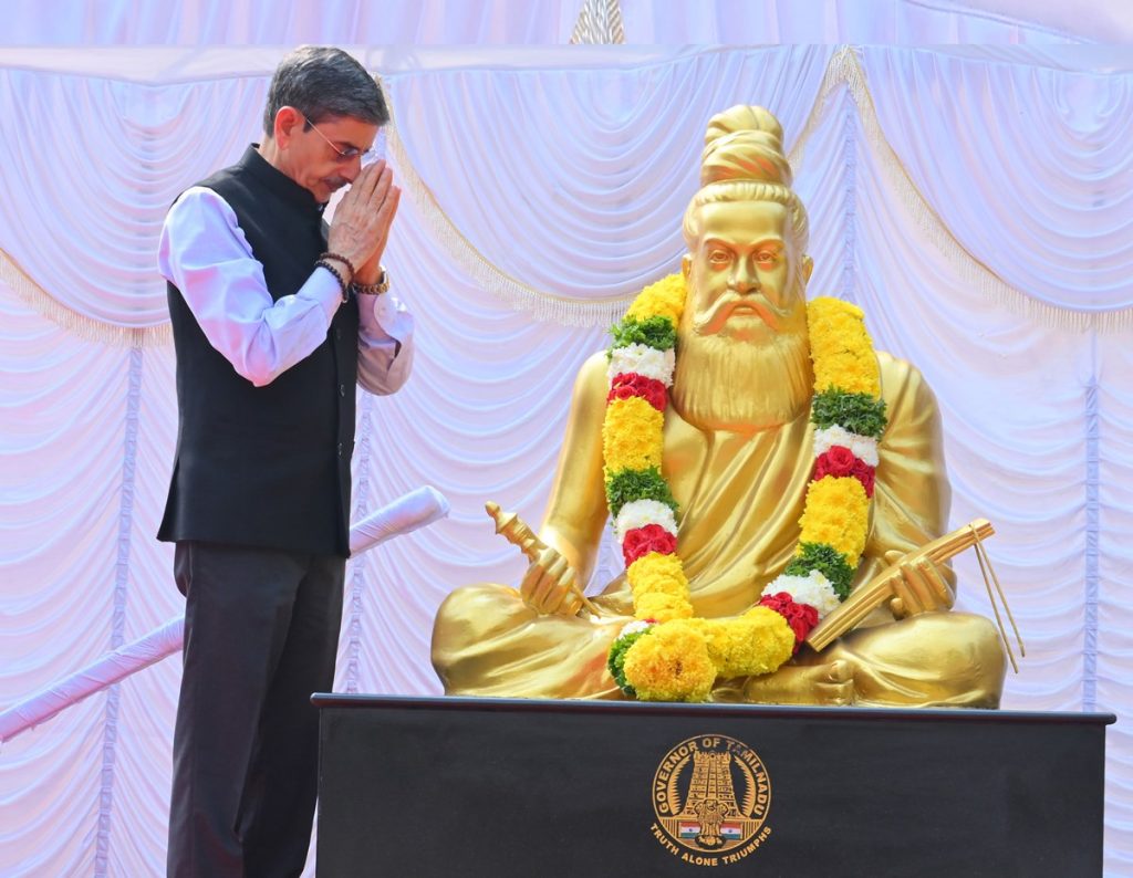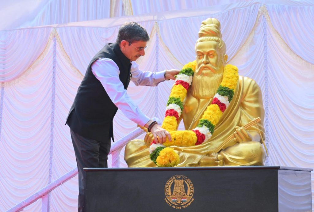 Thiru. R.N.Ravi, Hon’ble Governor of Tamil Nadu, garlanded and paid floral tribute to Saint Thiruvalluvar, on the occasion of Thiruvalluvar day at Thiruvalluvar Statue, Lok Bhavan -16.01.2026
