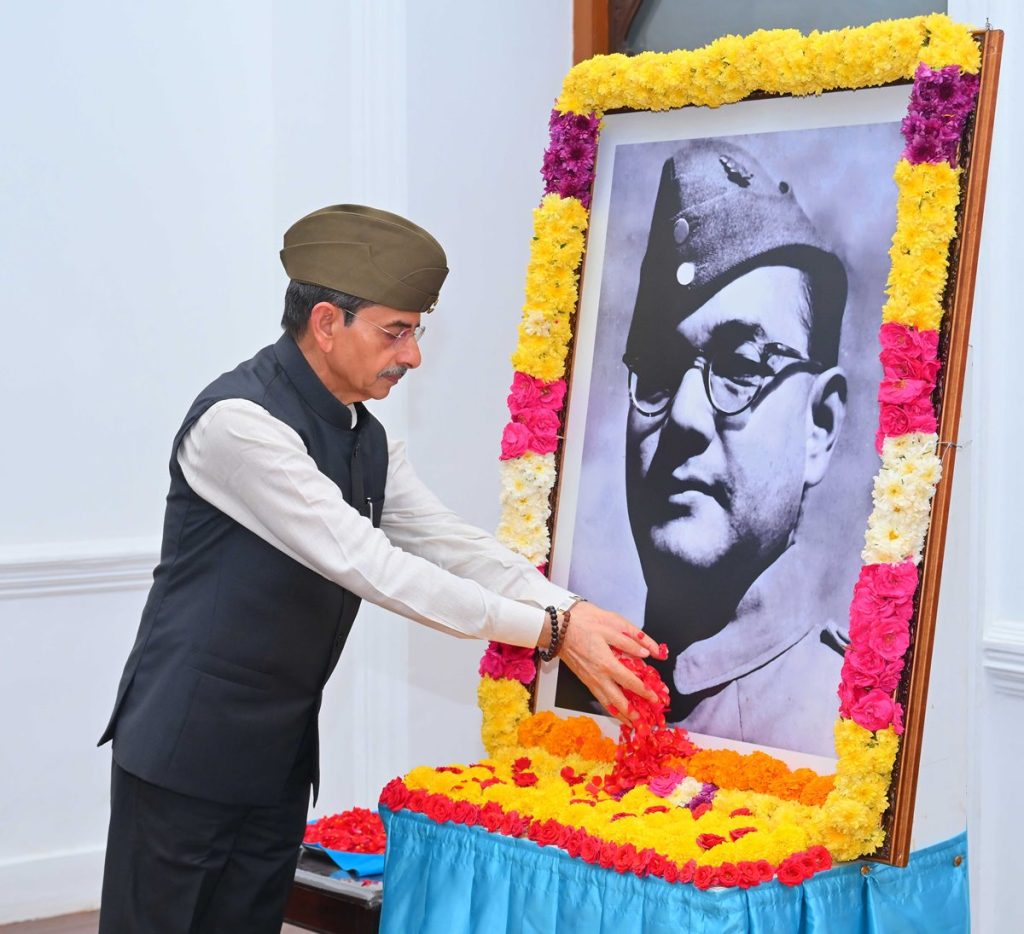 Thiru.R.N.Ravi, Hon’ble Governor of Tamil Nadu, paid floral tribute to the portrait of Netaji Subhas Chandra Bose at Raj Bhavan, Chennai – 21.10.2025