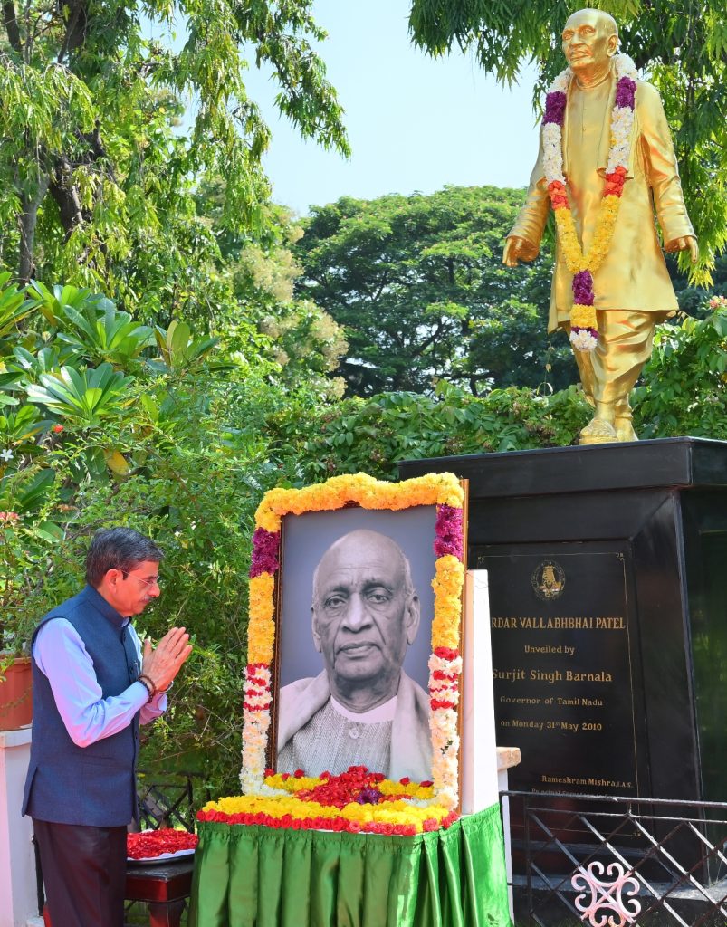 Thiru.R.N.Ravi, Hon’ble Governor of Tamil Nadu, paid floral tributes to the portrait of Sardar Vallabhbhai Patel on his 150th Birth Anniversary celebrated as ‘National Unity Day’ – 31.10.2025