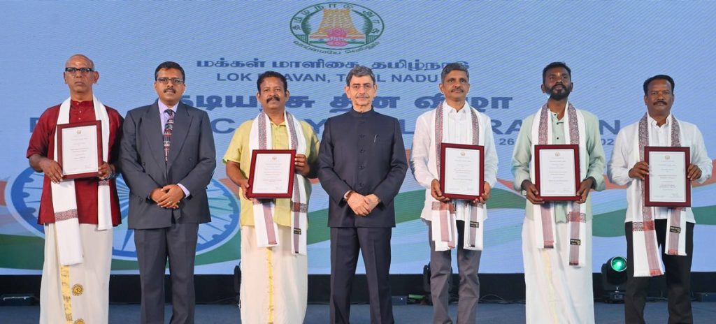Thiru. R.N.Ravi, Hon’ble Governor of Tamil Nadu presented ‘Governor’s Award – 2025’ to five awardees for their outstanding services to the society and the Nation – 26.01.2026